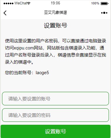 登录后录入的棋谱信息,可以在微信小程序的账号中心: